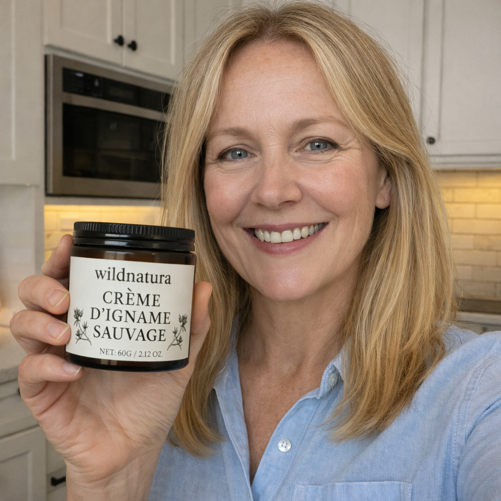 La ménopause m’a frappée fort… bouffées de chaleur constantes, sueurs nocturnes, et je pleurais ou m’énervais sans raison. Après trois semaines avec Wildnatura, les bouffées ont commencé à diminuer. Au deuxième mois, je dormais à nouveau toute la nuit et je me sentais stable. Ma famille dit que je suis “de retour”. Je le ressens aussi.