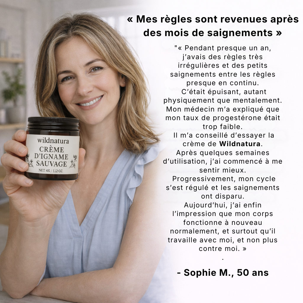 Absolument. Même si beaucoup utilisent Wildnatura pour accompagner la ménopause, ses bienfaits d’équilibrage de la progestérone peuvent aider à soulager le SPM, les irrégularités du cycle et les problèmes de peau liés aux hormones, à tout âge.